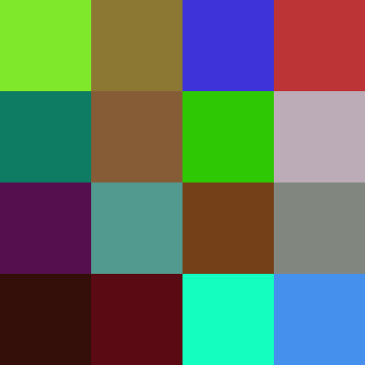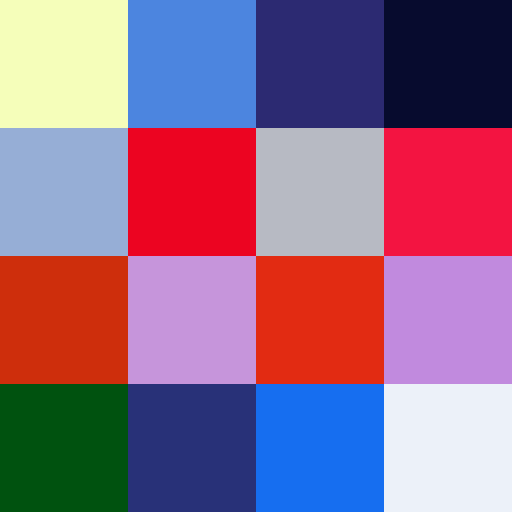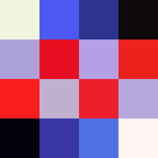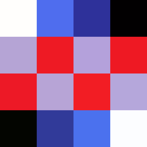The original test image was a 4x4 image comprised of a pattern of 6 colours; black, white, grey, red, blue and a lighter blue: